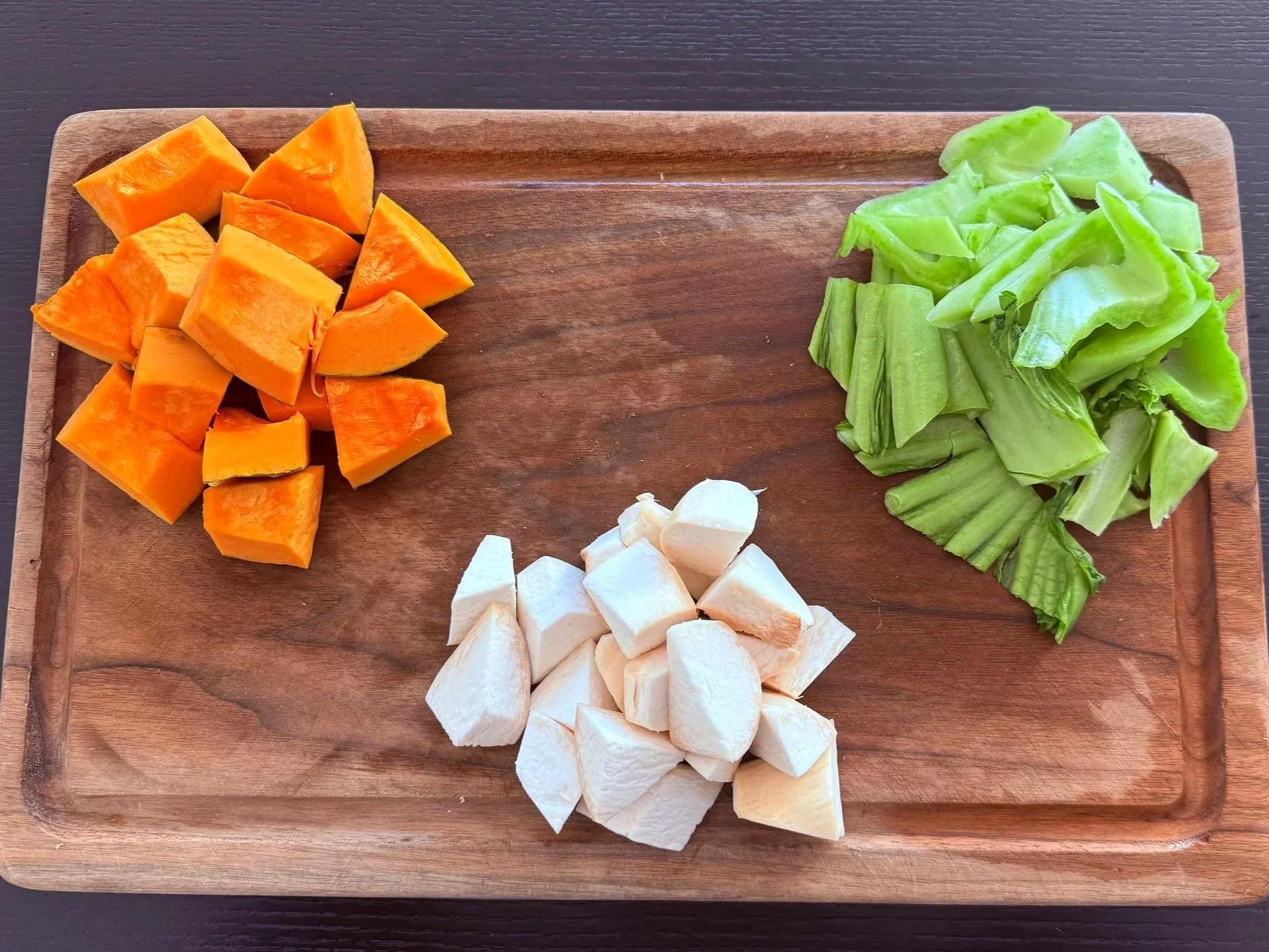 Kabocha squash (Asian Pumpkin) Cut into large chunks, skin on
