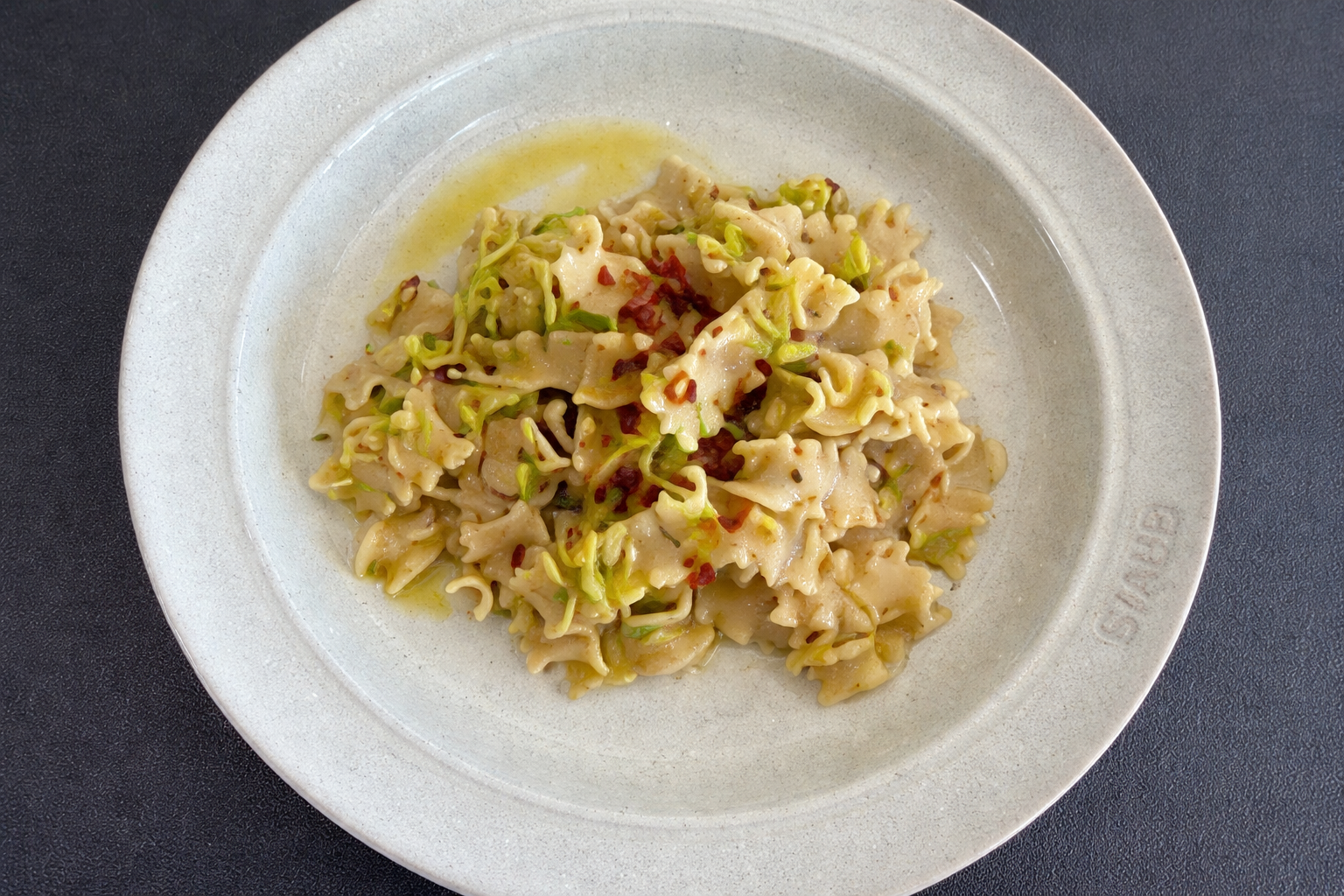 Pasta with Sautéed Brussels Sprouts & Pistachio Flour