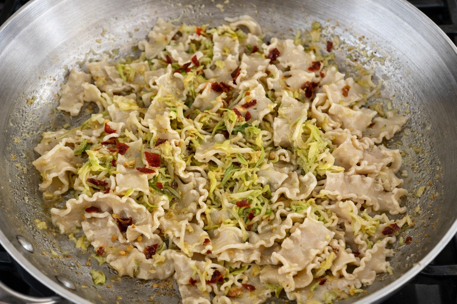 This dish benefits from gentle heat; avoid aggressive browning once sprouts go in.